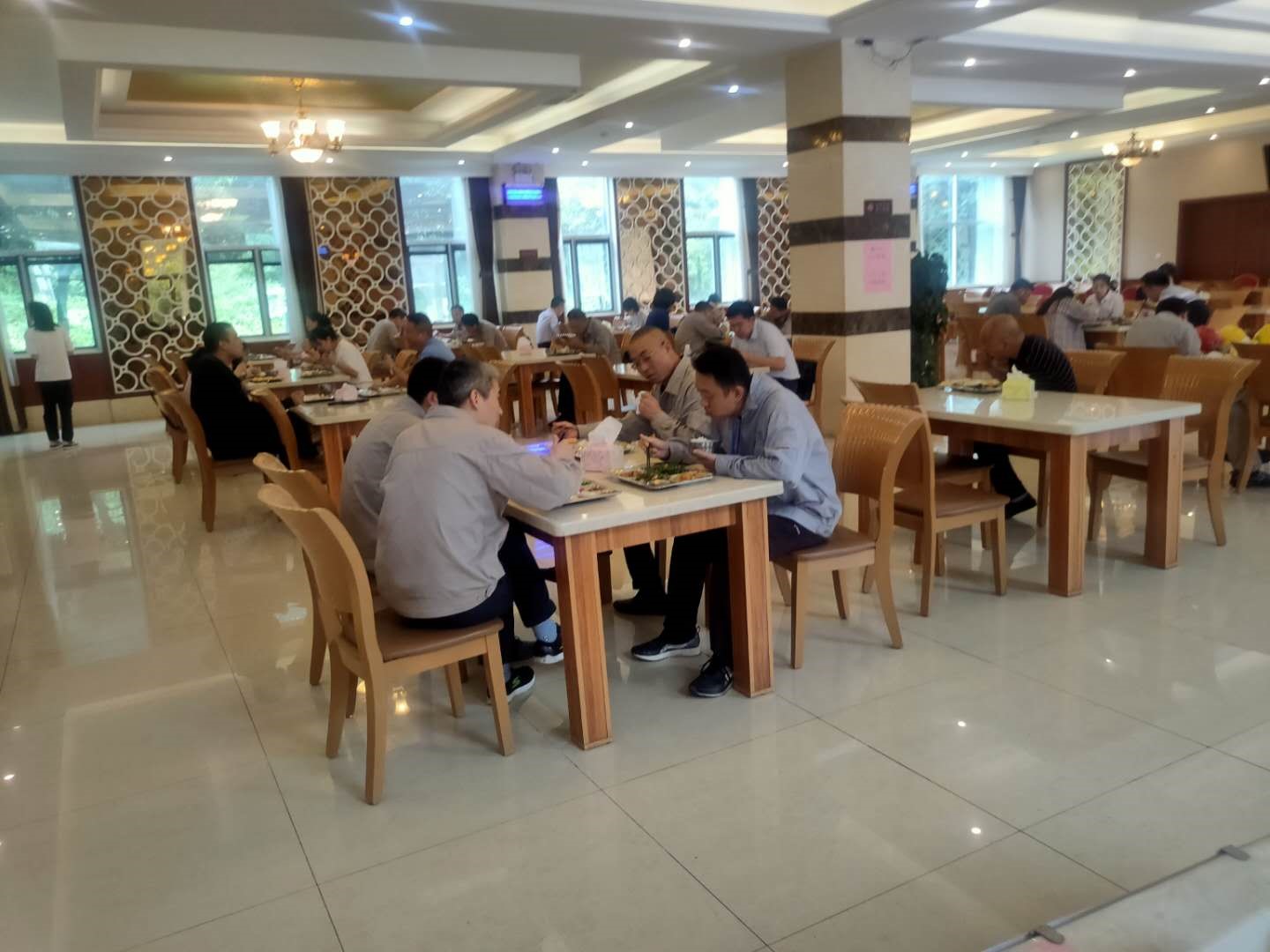 由于就餐人数增加,项目水质浑浊、净水设备停用,食堂用水不便等情况,使项目用餐保障工作面临巨大考验。紫水物业项目食堂采取错峰分批就餐形式,在保证员工用餐的同时也确保了接待用餐质量,得到了业主的高度评价。