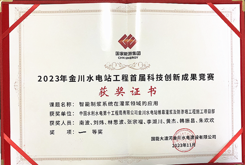 11月26日,在国能大渡河金川水电建设有限公司举办首届科技创新成果竞赛中,六分局金川水电站帷幕灌浆及防渗墙工程施工项目荣获“2023年金川水电站工程首届科技创新成果竞赛”一等奖。