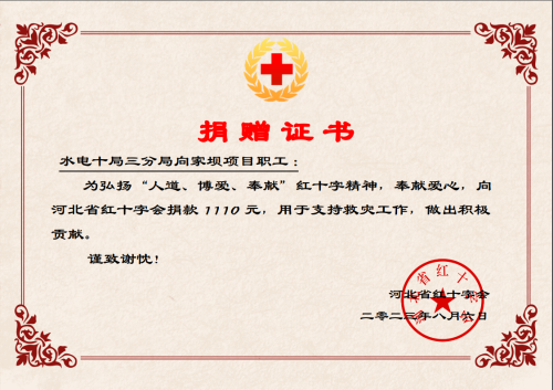 本次爱心捐款活动,党团干部带头作表率,广大职工积极响应号召,通过现场捐款和微信转账等方式奉献爱心。项目将筹得善款1110元捐向河北省红十字会,以实际行动支援灾区,切实发挥了党支部战斗堡垒作用,充分弘扬了“一方有难,八方支援”的优良传统。