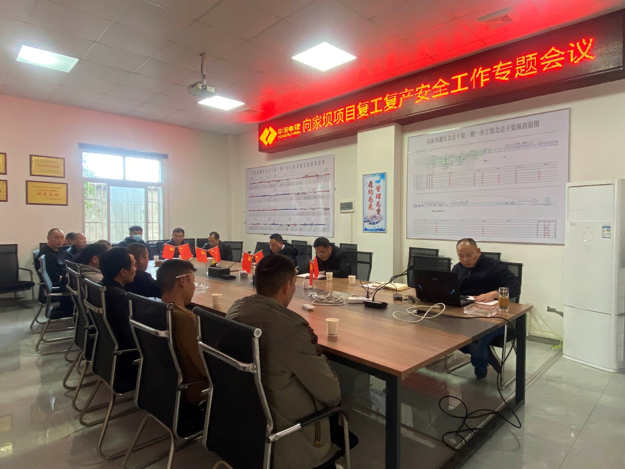 人勤春来早,奋进正当时!为实现2024年起好头、开好局、迈好步,正月初九,清晨第一丝阳光刚刚洒向大地,呈现出一片金黄色。项目会议室内早已徐徐排列整齐入座,项目经理亲自组织召开复工复产工作专题工作会,重点宣贯学习《三分局2024年度安全工作报告》及公司、分局领导重要讲话精神和《向家坝项目复工复产专项方案》,重点强调“六个一”要求,重点部署复工复产“三步走”具体措施。