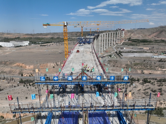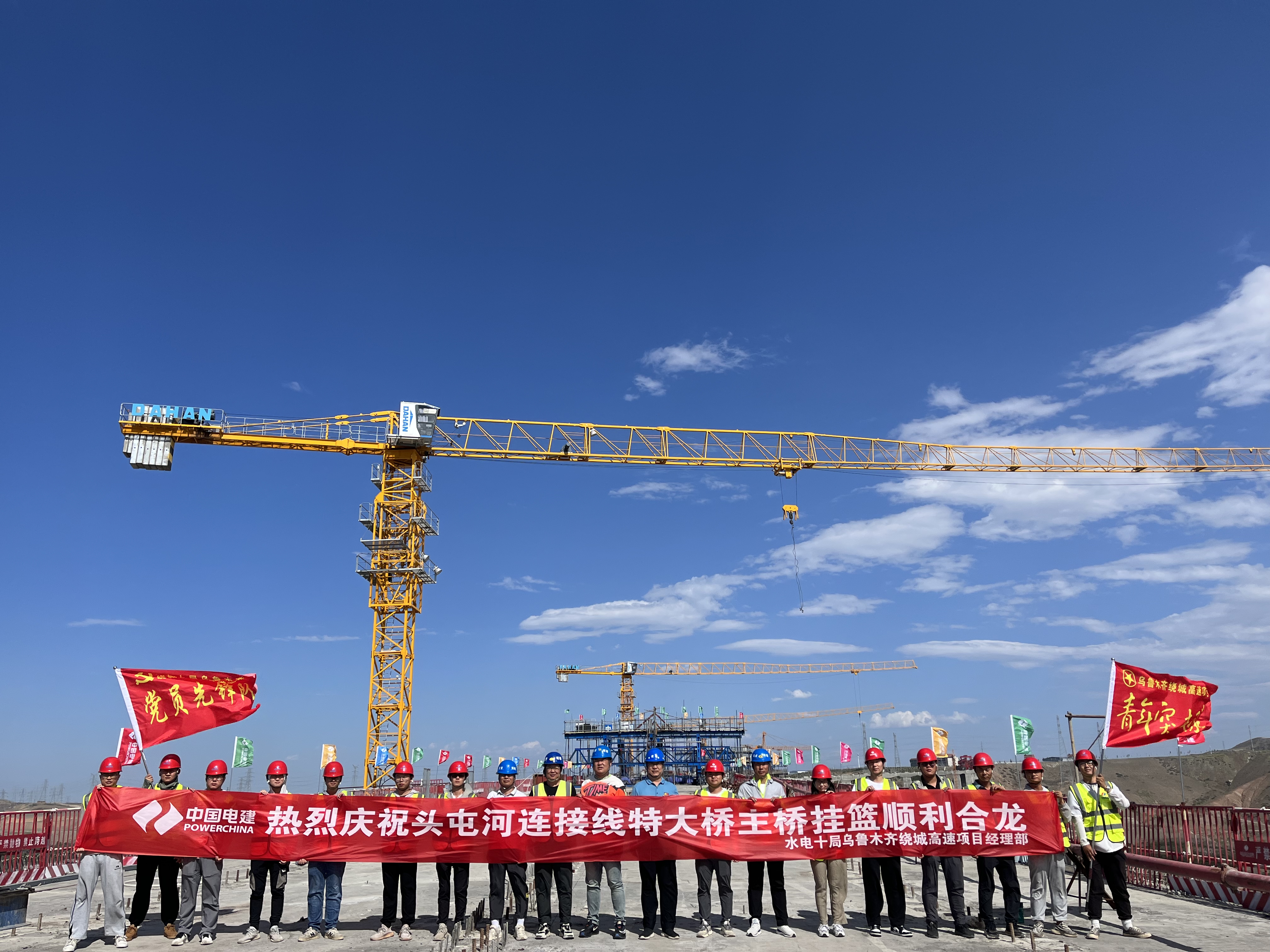 头屯河连接线特大桥是乌鲁木齐绕城高速项目全线重点控制性工程之一,大桥总长2284米,主桥桥墩高123.8米,桩基深度95米,主桥单跨跨径超过150米,是目前新疆在建第一高的挂篮施工特大桥,也是电建集团首个兼具大跨径、高墩柱、深桩基、变截面、双箱式挂篮等特点的特大桥项目。其建设对于完善新疆维吾尔自治区高速公路网规划、推动乌鲁木齐城市发展具有重要意义。