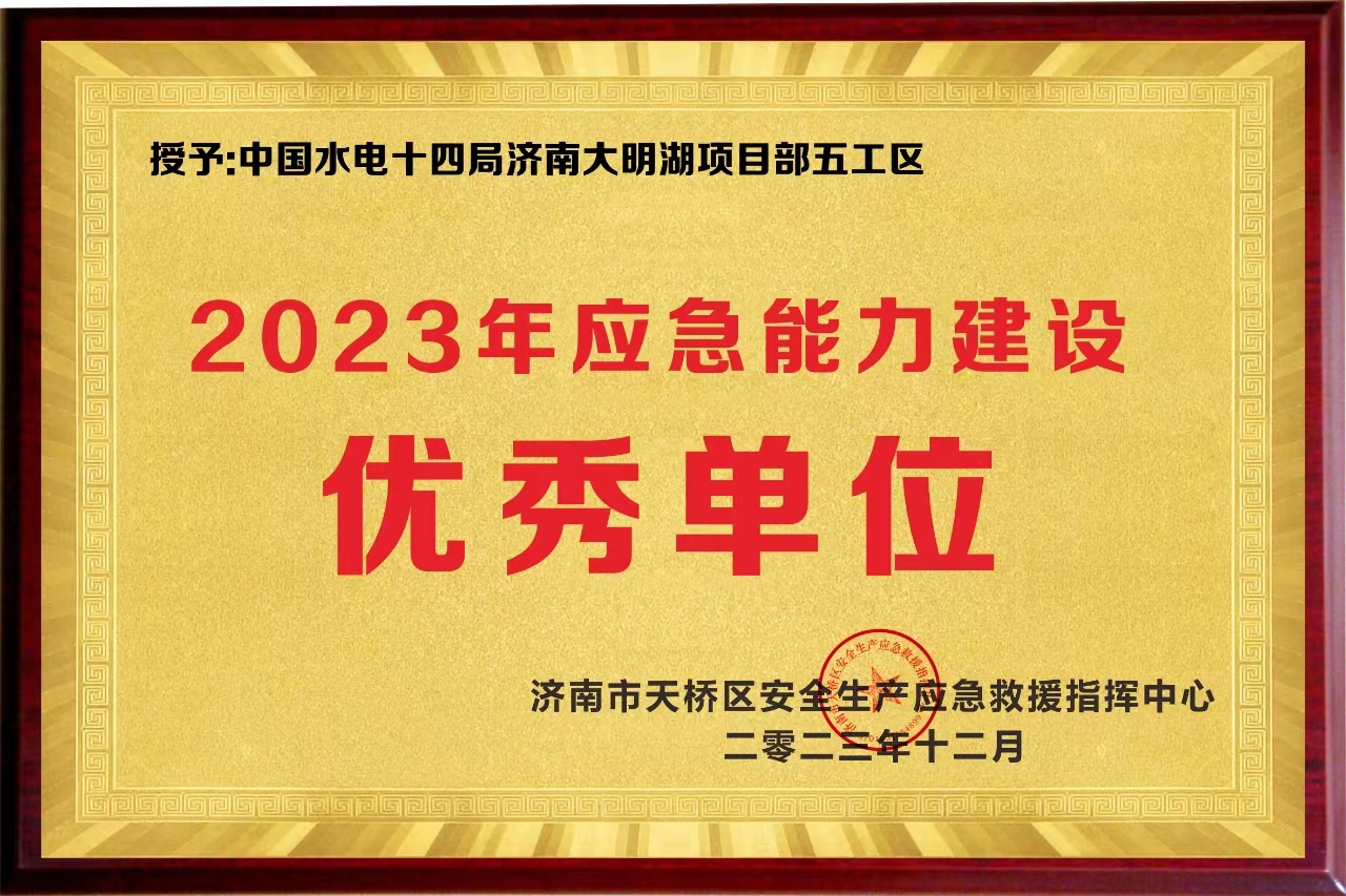 2023年12月29日,济南大明湖排水分区五工区项目部被济南市天桥区应急管理局表彰为“2023年应急能力建设优秀单位”。 济南大明湖项目部在关键时刻挺膺担当,积极响应政府单位号召,第一时间出动人员、设备、物资参与各项应急抢险工作,为保障市民安居乐业、维护社会安全稳定、服务经济社会高质量发展作出了突出贡献。在台风期间,济南市遭遇连续强降雨天气,城区积水内涝严重,项目部第一时间启动防汛应急预案,立即组织抢险人员、调动抢险设备进行疏导排水、吸污车抽排、砌放防汛沙袋挡水墙等抢险工作,有效缓解积水内涝问题;在寒冬季节,项目部以雪为令战寒潮,面对极端天气,积极帮助周边居民进行道路融雪、铲雪、清雪,为居民提供安全畅通的出行环境。 项目部表示,荣誉不是终点,而是奋进的起点,接下来,济南大明湖项目部将不断加强应急管理和防灾减灾救灾能力体系建设,持续提升应急处置保障能力,做好安全生产和防灾减灾等各项工作,全力以赴防范化解重大安全风险,坚决遏制各类事故发生,在维护人民群众生命财产安全和社会稳定中作出新的更大贡献。 |