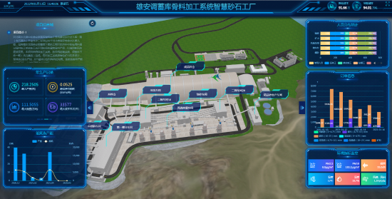 建立了“智慧矿山”绿色建造平台(V1.0),贯通了5大流程,集成了24个模块。创建了覆盖砂石项目规划设计、建设运营、环境治理和生态修复全过程的数字化整体解决方案,对矿山开采、加工、仓储、输送和装船全流程进行监测、自动化控制和智慧管理等,应用于长九(神山)、雄安等7个绿色砂石骨料项目中。