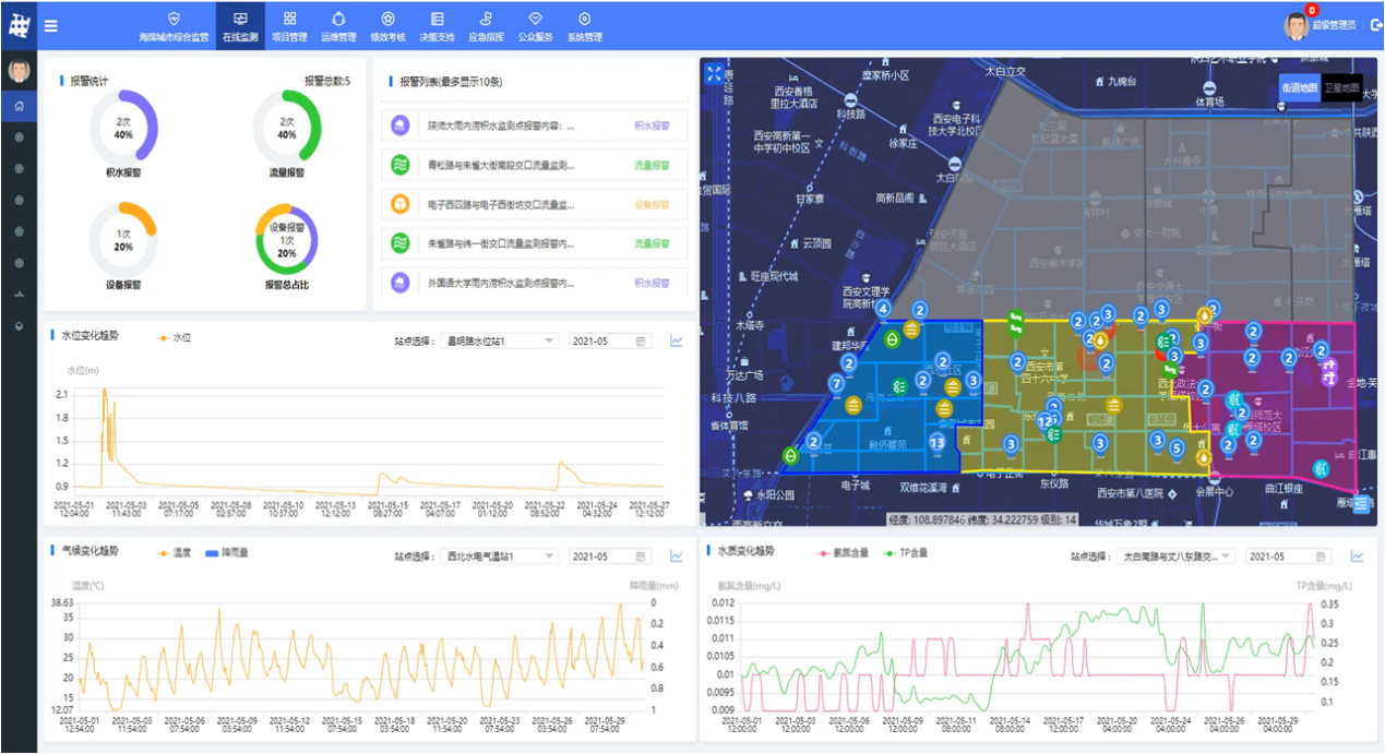 以海绵城市的三大科学内涵“水量上要削峰、水质上要减污、雨水资源要利用”为核心技术抓手,借助云计算、大数据、物联网、智能模型等先进信息化手段构建海绵城市智慧管控系统,提高投资运营、考核决策、预警预报、应急调度等方面的科学化综合管理水平,辅助城市范围内的水循环全过程科学、精益管控,从而促进城市化过程中人与水、人与自然的和谐相处。