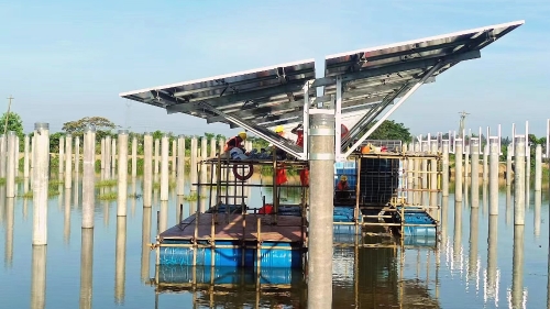 海南三江渔光互补项目部正积极贯彻落实集团(股份)公司党委年中工作会精神,推进项目高质量履约,有序开展项目支架固定、组件安装等工作,奋力冲刺工程各项节点目标。项目建设地点位于海口市美兰区三江镇,主要施工内容包括光伏场区全阶段的勘察、设计、审查,工程设备、材料的采购、运输和管理,设备安装及调试,工程土建施工等子项。