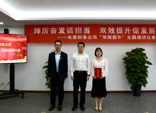 演讲现场,每组选手的表现都精彩纷呈、可圈可点。来自资金结算部的薛方琳,以颇具中国风的表达方式,全面展现了结算业务条线以一个团队好似“一个人”的团结协作、爱岗敬业,切实保障公司结算业务7×24小时“全天候不打烊”。来自信贷管理部的崔羽涵,以《初心如磐、扬鞭脚下,在变与不变中奋楫笃行》为题,从成员企业的视角,生动呈现了公司“双效提升”行动带来的服务质效持续改善,以及公司坚守服务集团、服务成员企业不变的初心。来自金融市场部的朱佳莹,别出心裁的从交通管理方法切入,讲述了金融市场业务以“用足头寸、用好窗口、用活产品”为根本遵循,如何创新金融工具、提升外源性资金价值创造能力的生动实践。来自计划财务部的周玉坚以深入浅出的方式,讲解了具有金融特色的资产负债管理模型,助力公司提高资金、资产运营效率,打造价值创造型财务管理体系。来自办公室的刘梅娟、信息技术部的黄剑楠创新采取跨部门组队的形式,从数字和文字的角度全景式呈现“双效提升”成果,生动讲述了公司大力推动管理创新、业务创新、信息化数智化建设的重要意义。经过激烈角逐,最终刘梅娟、黄剑楠小组荣获一等奖,崔羽涵、周玉坚荣获二等奖,宁玉波、薛方琳及于洪远、张昊真、马倩文小组荣获三等奖。