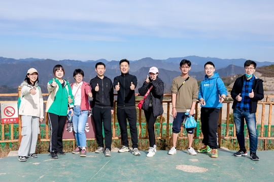 寒山转苍翠,秋水日潺湲。美丽的蟒山,层林尽染,叠翠流金,参加活动人员在现场随机分为4队,任务目标是全体队员登顶。大家摩拳擦掌,跃跃欲试,斗志昂扬整装待发。比赛过程中,各队充分发挥团队协作精神,队员们相互鼓励,争先恐后,克服险阻,攀越陡壁。经过激烈竞争,最终二队9名队员第一个齐聚山顶,大家在蓝天白云见证下,站在高山之巅合影留念,庆祝夺冠。大家纷纷表示,登山活动不仅锻炼了体魄,更锤炼了团队合作精神。在你追我赶中共同体验登顶的喜悦,这是团队凝聚力与战斗力的生动体现,展现了电建人奋发向上、坚持不懈、携手共进的良好精神风貌。