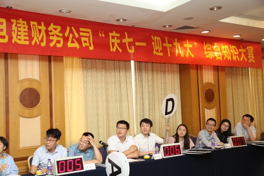 6月29日,财务公司举办了“庆七一,喜迎党的十九大”综合知识大赛。财务公司党委书记沈国华、纪委书记杨志强、副总经理龚健莅临现场,并邀请集团公司团委副书记刘新建到场指导,观看了选手们精彩比赛。