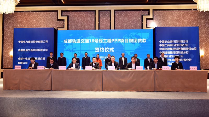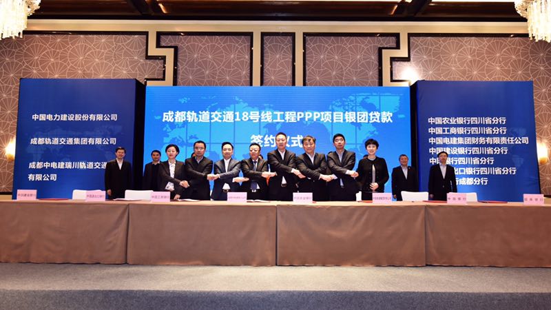 12月9日,由电建股份公司投资的成都轨道交通18号线工程PPP项目银团贷款签约仪式在成都举行。电建铁路公司代表电建股份公司与融资银团各方签订了银团贷款框架协议。股份公司总会计师孙璀出席会议并与中国农业银行总行业务总监赵忠世共同见证了签约仪式,股份公司资金管理部主任、电建财务公司总经理陈波参加签约仪式。电建财务公司作为银团联合牵头方为项目提供融资支持,副总经理龚健代表财务公司签约。
