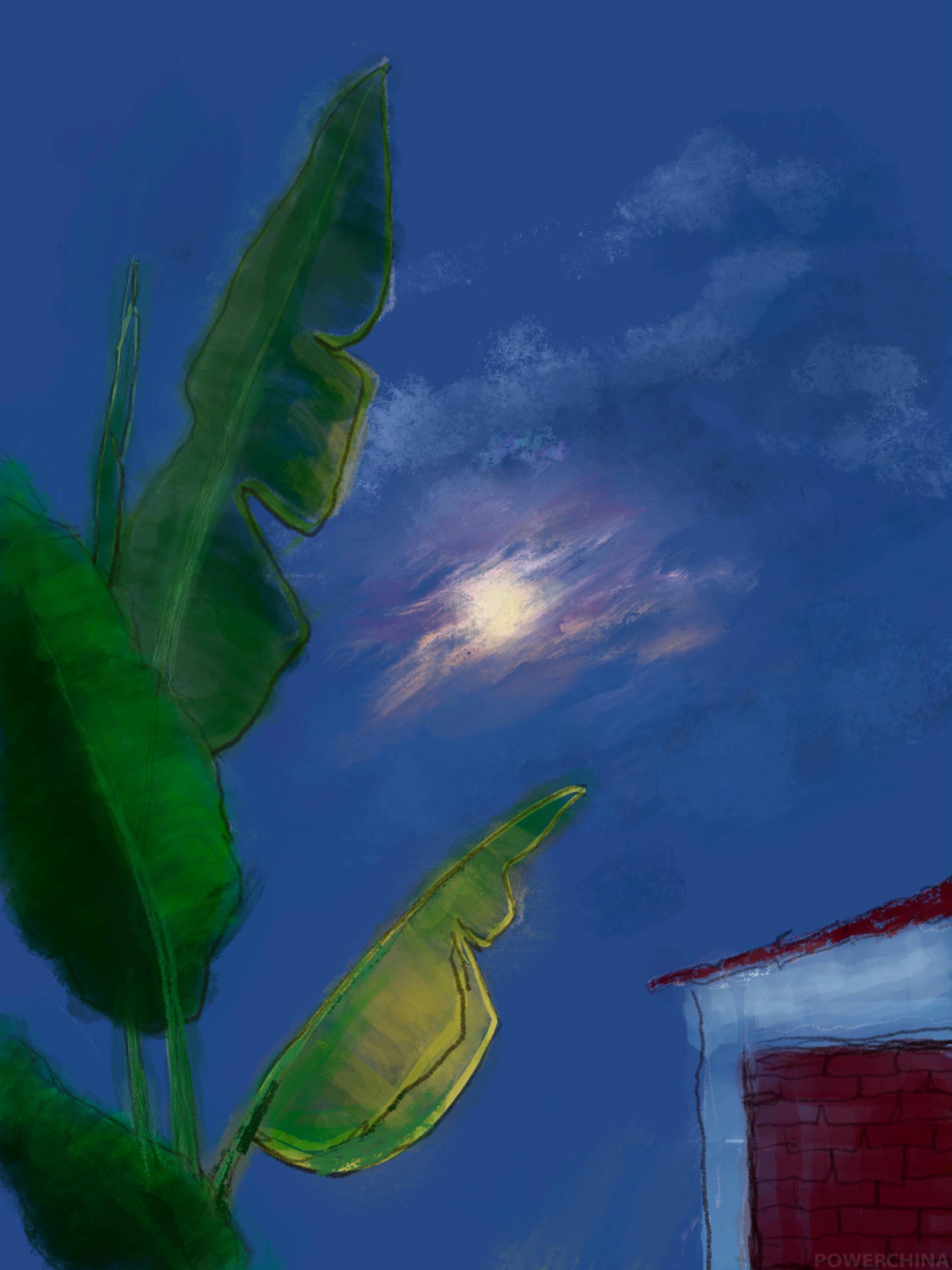 【绘画作品】芭蕉叶与月