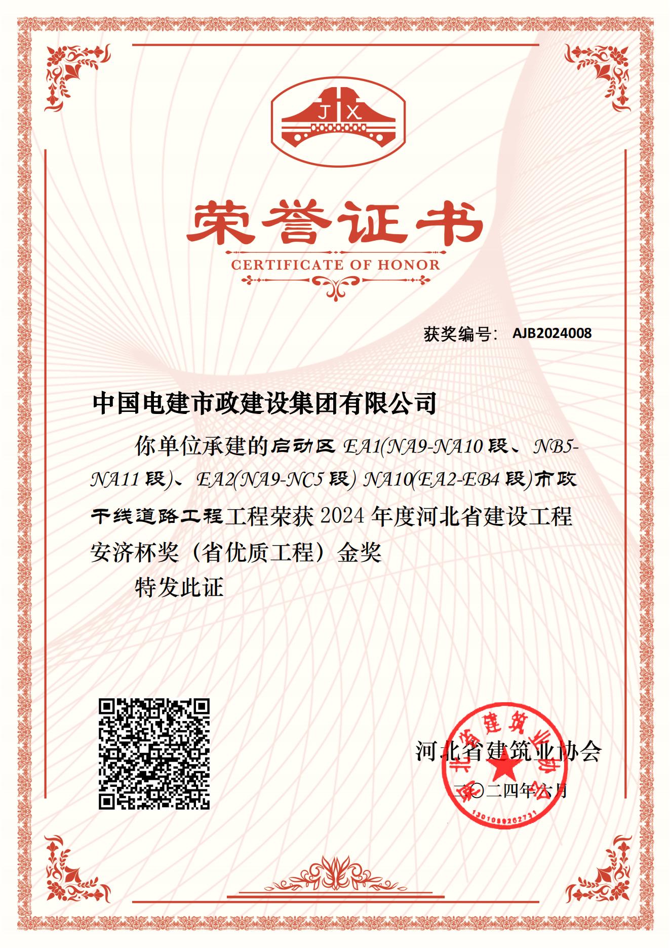 日前,水环境公司传来喜讯,雄安启动区管廊项目获河北省建设工程安济杯奖(省优质工程)金奖。
